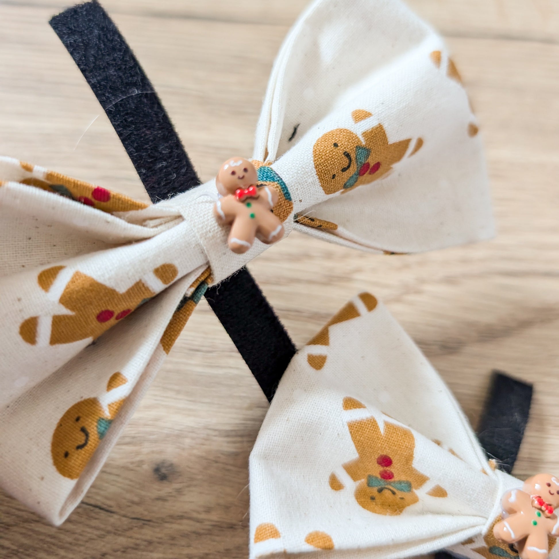 Get ready for the sweetest season with the adorable Gingerbread Bow dog bow tie! This charming accessory is made from soft, high-quality cotton and features a delightful, festive gingerbread pattern throughout. The real showstopper is the small, 3D plush gingerbread man nestled right in the center. It adds a wonderful pop of dimension and undeniable Christmas cheer!